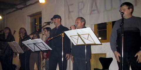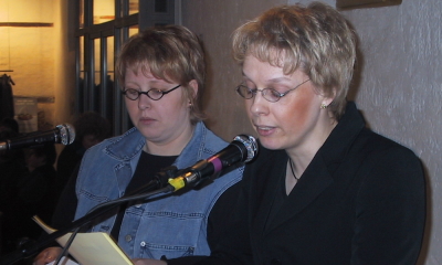 Die diesjährige Feier des DGB zum Internationalen Frauentag fand am 8. März in der Ökonomie von Kloster Bentlage in Rheine statt. Für die DGB-Frauen begrüßten Gabi Diekmann (IG Metall) (rechts) und Iris Gebauer (ver.di) (links) die zahlreich erschienenen Kolleginnen und Kollegen und gingen dabei auf die Geschichte des Frauentages ein, der 1911 von Klara Zetkin initiiert wurde, um in erster Linie das allgemeine Wahlrecht für die Frauen durchzusetzen. Dieses Recht sei heute realisiert; heute gehe es eher um die Durchsetzung von gleichen Chancen für Frauen und Männer in Betrieb und Verwaltung. |
