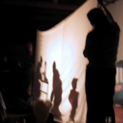 Ein Stück ernsthafter hörten sich die Informationen an, die die DGB-Frauen über die Situation von schwarzen Hausangestellten in Südafrika vermittelten und die durch eine eindrucksvolle Schattentheater-Darstellung (rechts) verdeutlicht wurden. Um die Tätigkeit der SADSAWU - South African Domestic Workers Union - künftig unterstützen zu können - wurde auf der Veranstaltung eine Spendenaktion durchgeführt. Hiermit soll die Amschaffung eines PC für diese Organisation ermöglicht werden. |
