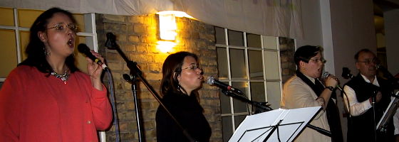 Das in Dortmund beheimatete politische Kabarett "BETRIEBS-Risiko" (oben) beleuchtete anschließend in vielen Musikbeiträgen und Sketchen unser schrilles Leben im frühen 21. Jahrhundert, wobei die thematische Spannbreite vom Rinderwahnsinn über "Mittwochs im ALDI" bis hin zu den anstehenden Betriebratswahlen reichte.