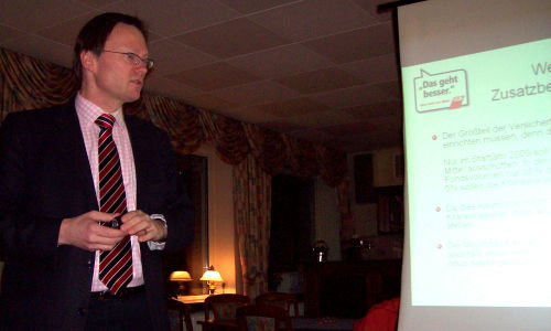 Kollege Andreas Schmidt stellte die Eckpunkte der geplanten Gesundheitsreform und die Kritikpunkte aus gewerkschaftlicher Sicht den DGB-Mitgliedern in Rheine in kompetenter und anschaulicher Weise dar.