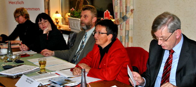 Einleitend skizzierte DGB-Regionssekretär Rolf Hannemann die Position der Gewerkschaften zur Thematik. Es sei nicht akzeptabel, dass vollbeschäftigte Arbeitnehmer in der Bundesrepublik auf Grund niedriger Stundenlöhne nur zu einem Einkommen kämen, das durch staatliche Zahlungen erst aufgestockt werden müsse, um das Hartz IV-Niveau zu erreichen. Die DGB-Gewerkschaften forderten daher im Augenblick einen gesetzlichen Mindeststundenlohn von 8,50 €, was zu einem monatlichen Bruttoeinkommen von 1300 € und zu einem Nettoeinkommen von etwa 1000 € führe. Eine solche Einkommenserhöhung stärke nicht nur die Kaufkraft, sondern erhöhe auch die Einnahmen der Sozialversicherungsträger und der Lohnsteuer.